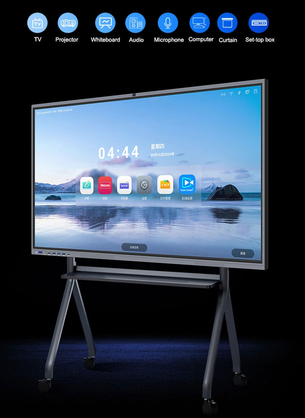 テレビ、プロジェクター、コンピューター、ホワイトボード、セットトップ ボックス、マイク、オーディオ システム、カーテンを含む 8 つの機能を高度に統合することにより、統一されたシームレスなインテリジェントな操作エクスペリエンスが作成されます。