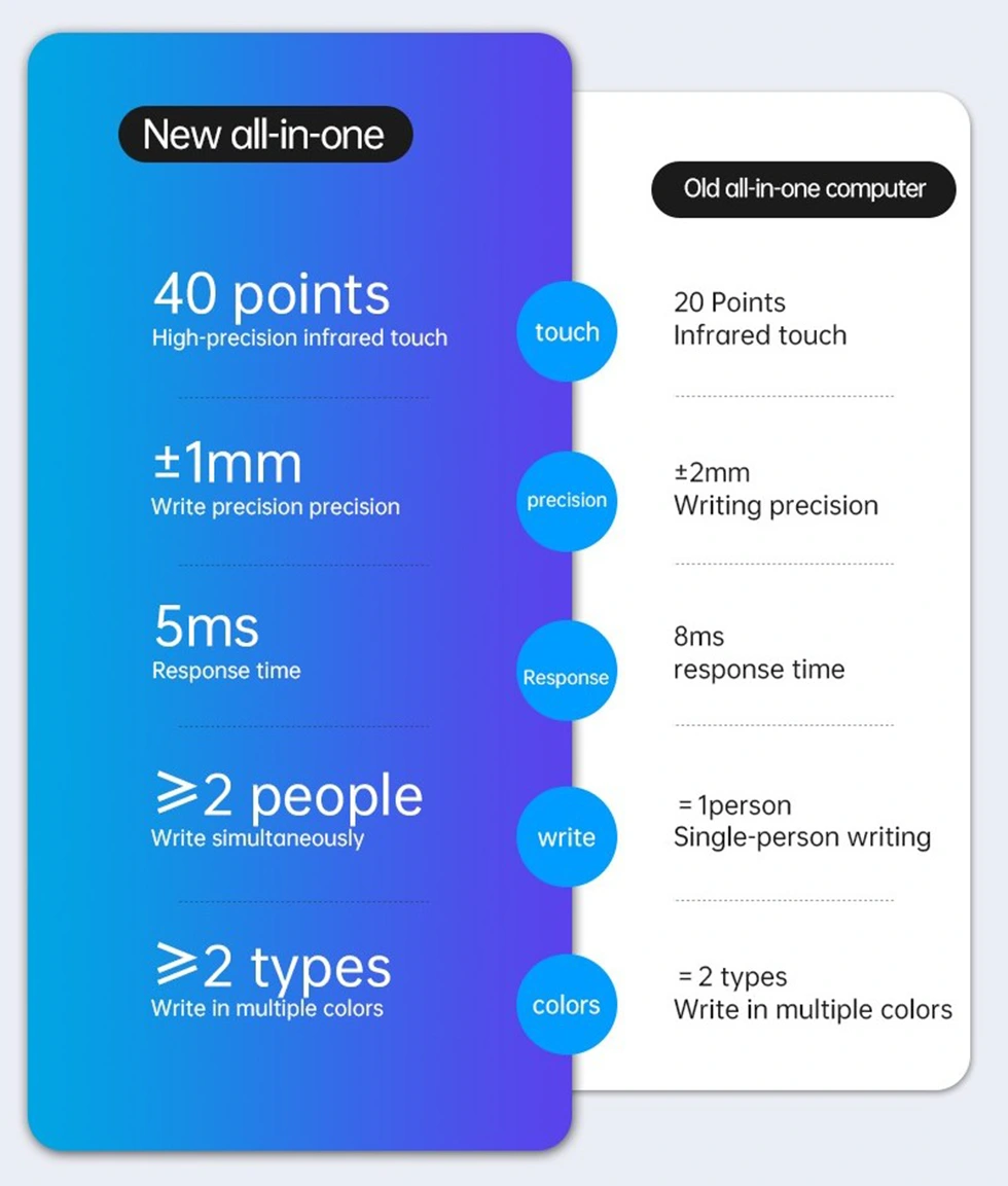 高度な赤外線タッチ テクノロジーは、応答性が高く正確なタッチ インタラクションにより、シームレスなコラボレーションを促進します。 40 のタッチ ポイントと、ズームやナビゲーションのための直感的なジェスチャー コントロールによるマルチユーザー コラボレーションをサポートします。このテクノロジーは、プロフェッショナルの多様なニーズに適応するために、カスタマイズ可能なペン設定と拡張可能なワークスペースも提供します。