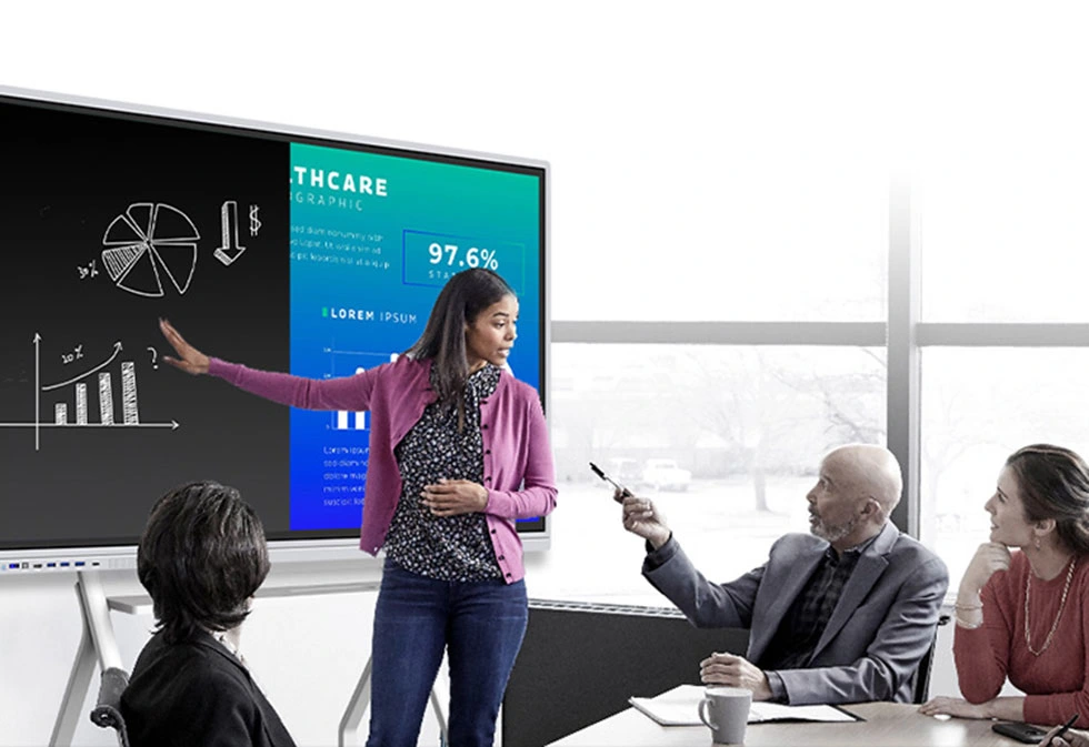 116 インチ 4K UHD フラット パネル ディスプレイは、煩雑な機器を単一の統合ソリューションに置き換え、より効率的なコミュニケーションを促進することで、チームのコラボレーションを再定義します。